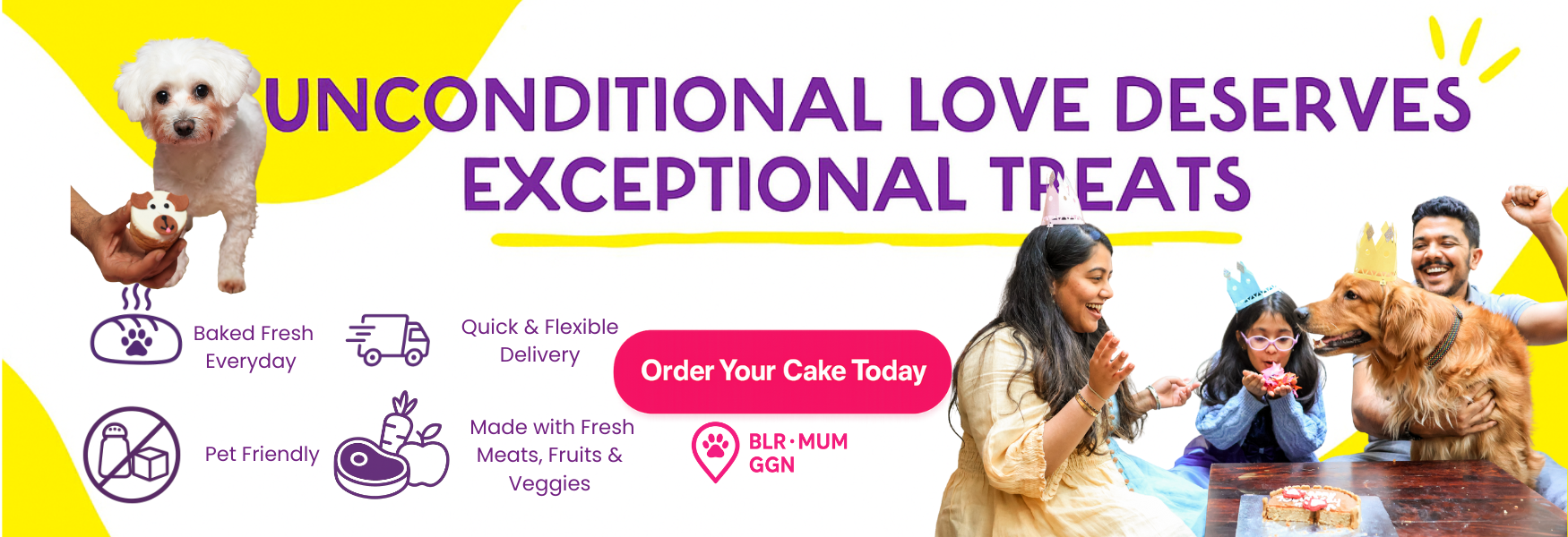 At The Doggy Bakery, we believe that ingredients matter when it comes to your pup’s treats. Our dog cakes are made with healthy, pet-friendly, and FSSAI-approved ingredients, ensuring a delicious and nutritious experience for your furry friend.
