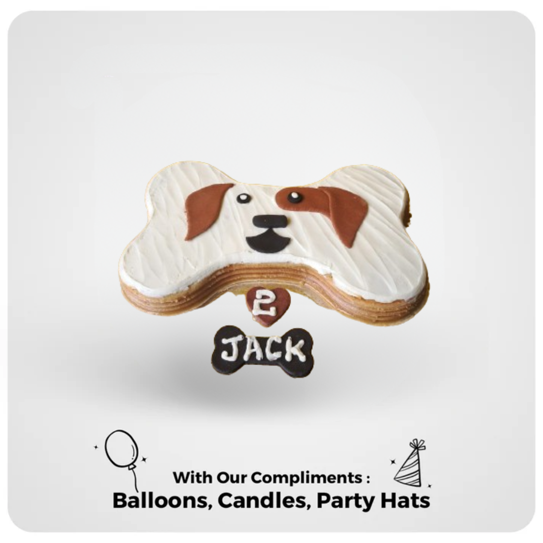 The "Biscuit Buddy Cake" combines a classic dog bone shape with a joyful pooch expression, making it a delightful centerpiece for celebrations and a tasty tribute to our playful pals.