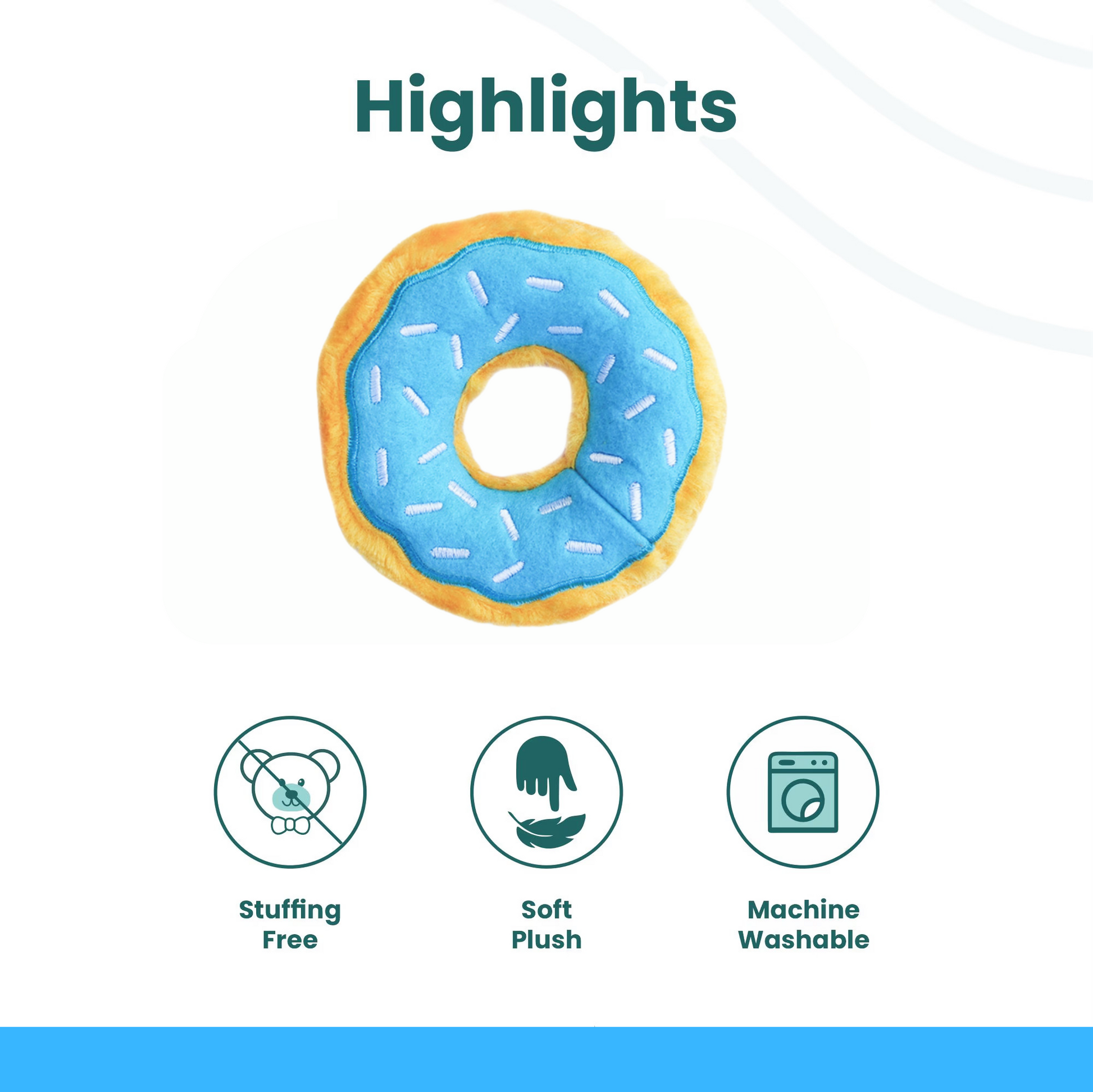 Embroidered "sprinkles" and toppings make them look like real delicious donuts! Each donut includes 2 exclusive mini crescent squeakers. No stuffing. 5 x 5 x 1 inches.