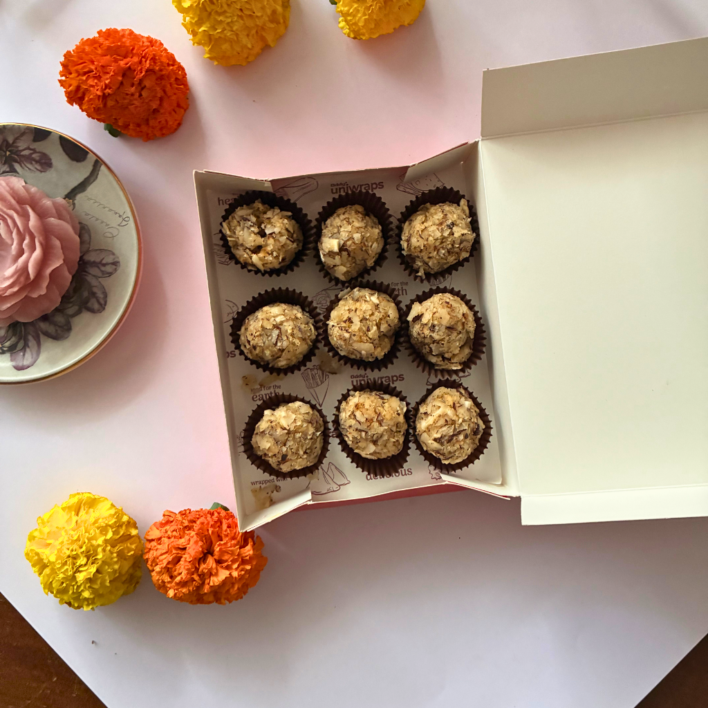 Available in boxes of 9 or 12 ladoos.