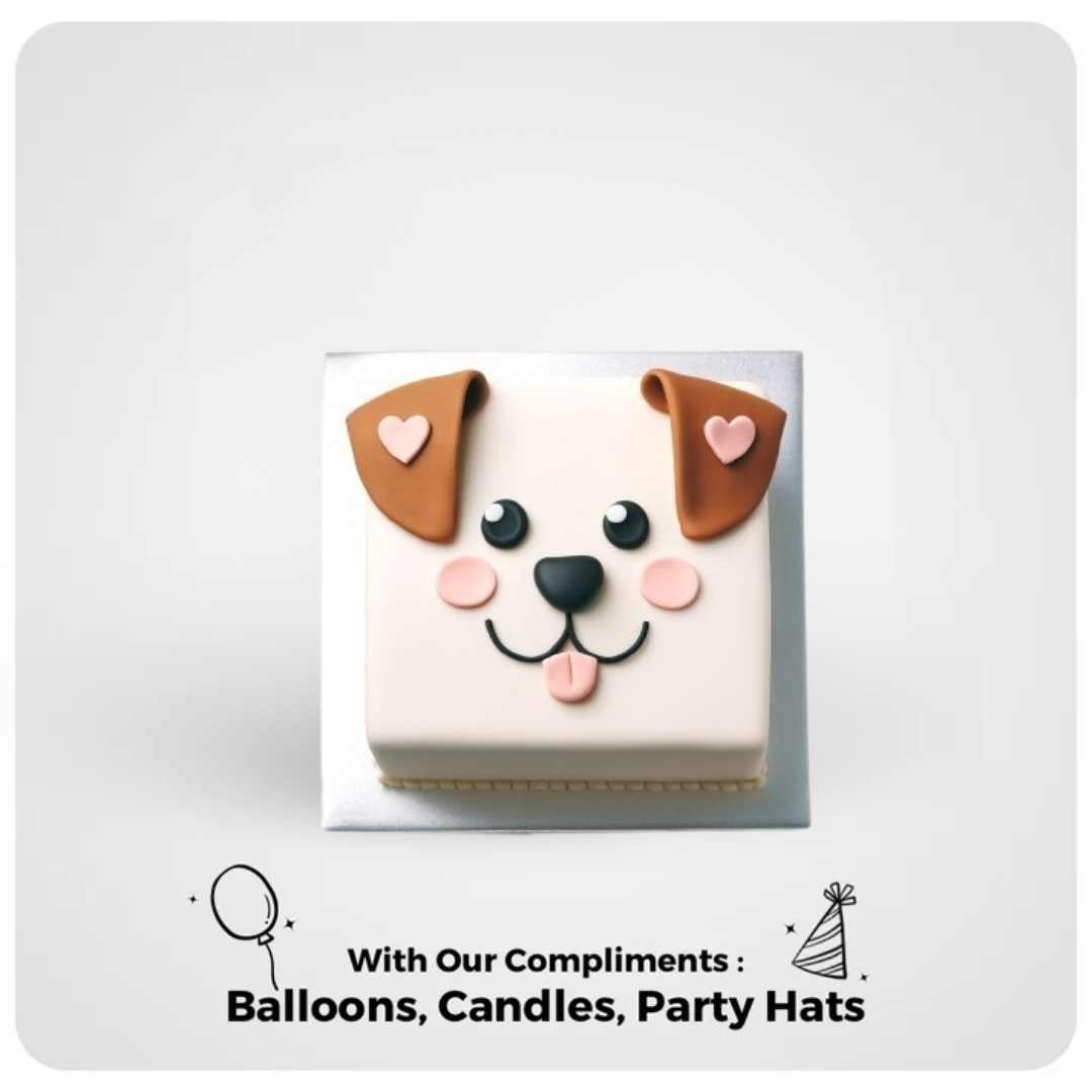 With its endearing heart-shaped ears and rosy-cheeked smile, the "Hearty Hound Cake" is a loving nod to the furry friends that hold a special place in our hearts. This cake is a sweet square of canine adoration.