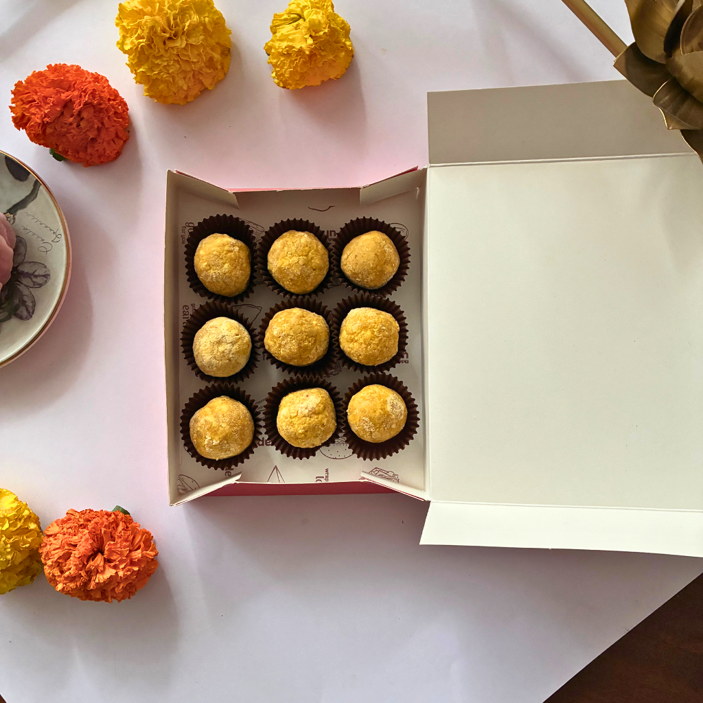 Our Besan Ladoos are crafted with wholesome, pet-friendly ingredients – no refined sugar, no preservatives, just pure festive joy. These ladoos let your dog join in the celebration without missing out on the mithai moments that make Indian festivals so special.