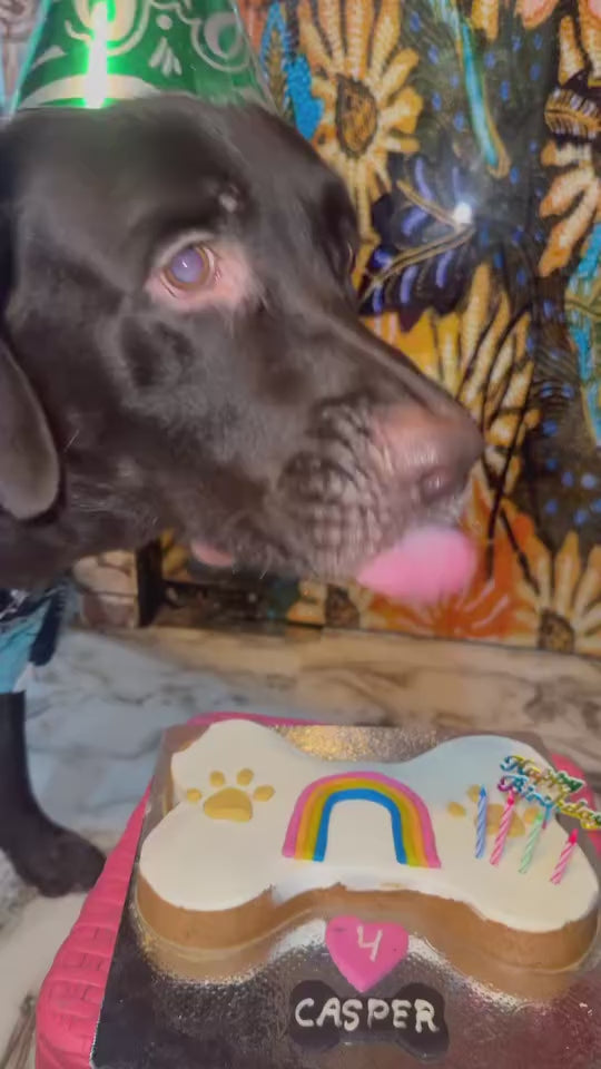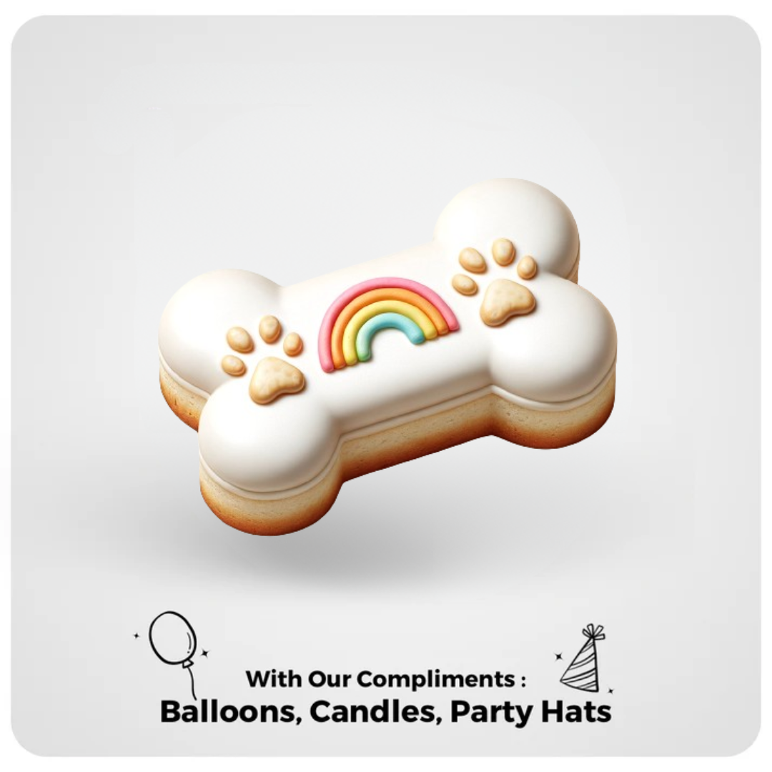 Shaped like a classic dog bone, this cake boasts a cascade of Pride colors on top with a clean white icing base, offering a tasteful nod to inclusivity.